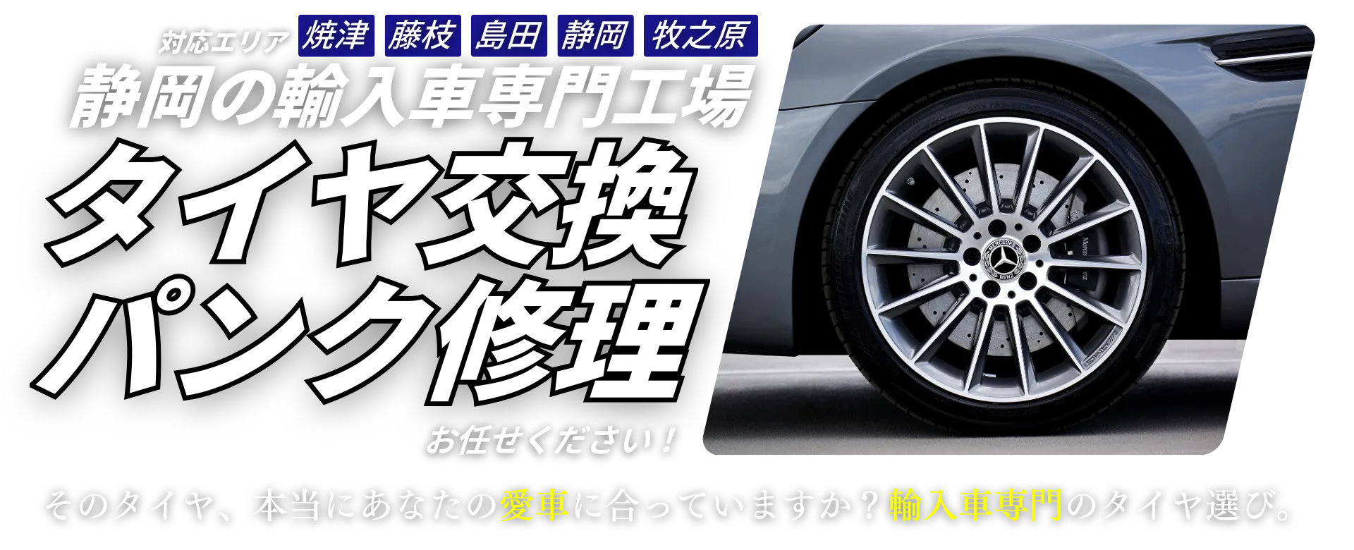 輸入車のタイヤ交換は、専門知識を備えた当店へ。高い技術と丁寧なヒアリングで、お客様の車両・走り方に最適なタイヤと、安心して任せられるサービスをご提供します。